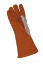 Ograniczony kontakt z częściami do 250°C. Obróbka zapewniająca odporność na wysoką temperaturę zapobiega kurczeniu się skóry po wielokrotnym narażeniu na ciepło, a tym samym zapewnia zachowanie elastyczności skórzanych rękawic i rękawic jednopalcowych. Aluminizowana górna część rękawicy chroni grzbiet dłoni przed promieniowaniem cieplnym i rozpryskami stopionego metalu. Rękawica zalecana do wykonywania prac odlewniczych (żeliwo, stal, aluminium) lub spawania i cięcia płomieniowego.