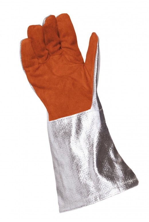 Ograniczony kontakt z częściami do 250°C. Obróbka zapewniająca odporność na wysoką temperaturę zapobiega kurczeniu się skóry po wielokrotnym narażeniu na ciepło, a tym samym zapewnia zachowanie elastyczności skórzanych rękawic i rękawic jednopalcowych. Aluminizowana górna część rękawicy chroni grzbiet dłoni przed promieniowaniem cieplnym i rozpryskami stopionego metalu. Rękawica zalecana do wykonywania prac odlewniczych (żeliwo, stal, aluminium) lub spawania i cięcia płomieniowego.
